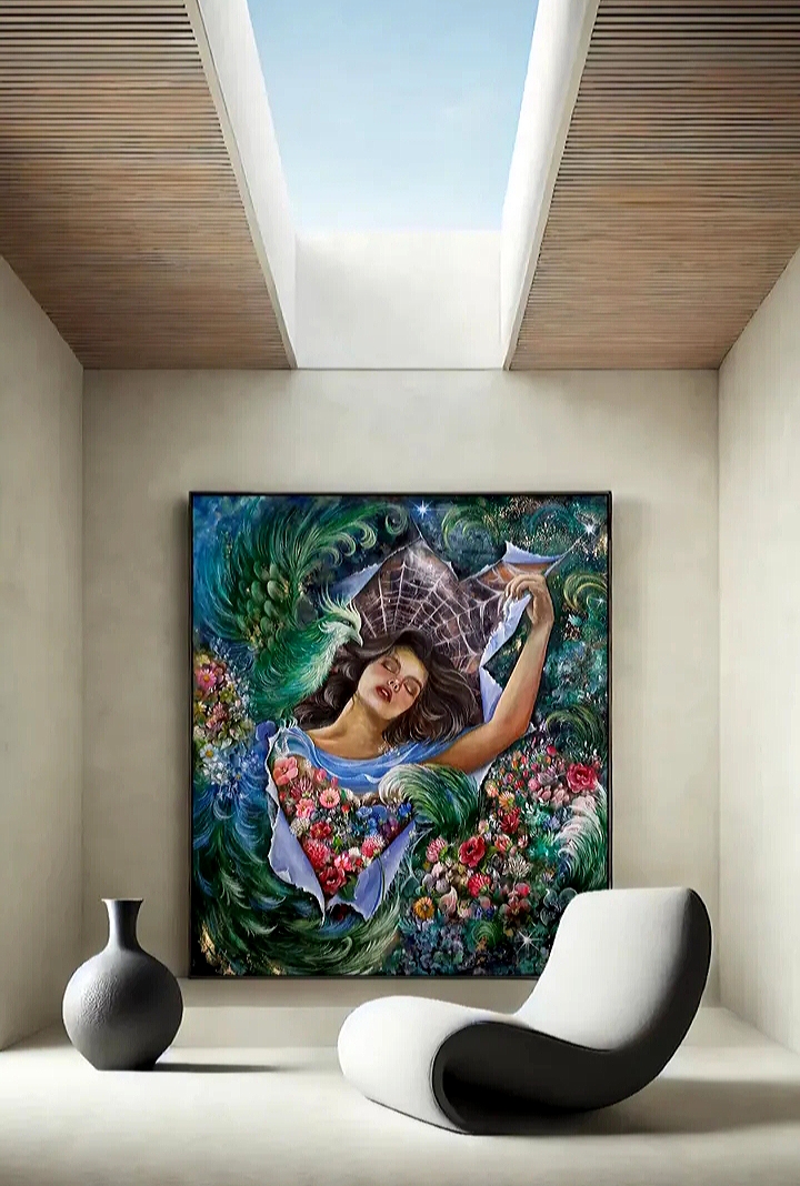 تابلو نقاشی نگارگری اکرولیک با عنوان رهایی الهام گرفته از هنر ایرانی